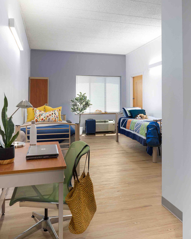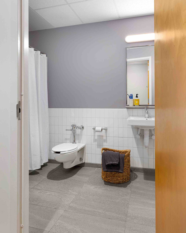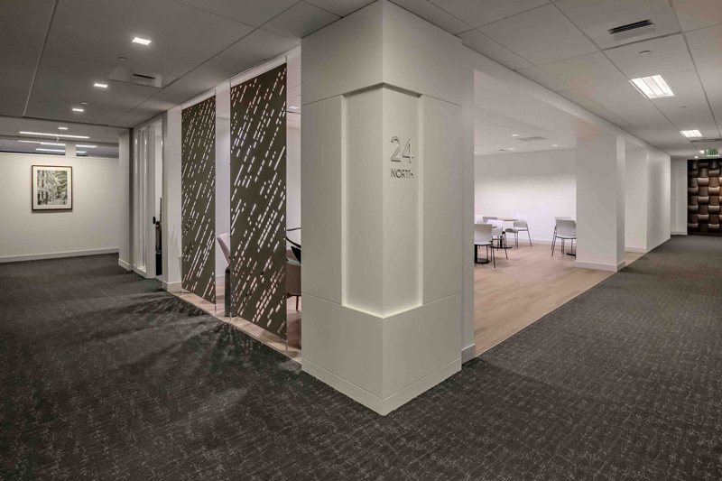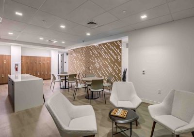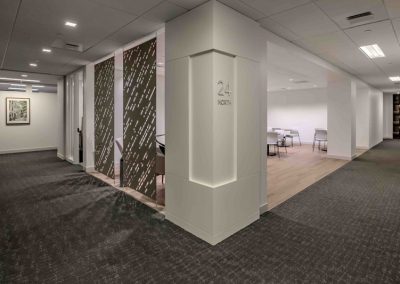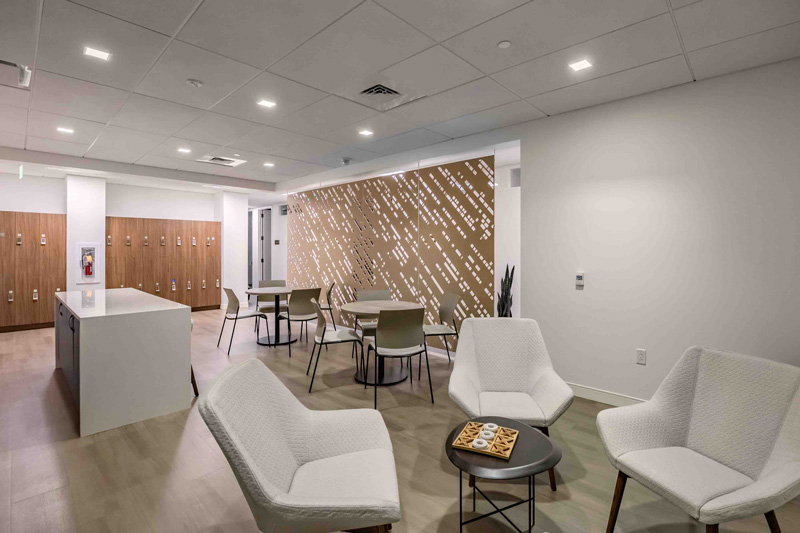 In addition to refreshing 6 floors of corridors with new carpet, paint and light fixtures, the project also included creating a small marketplace, new fitness center, yoga room, health and wellness