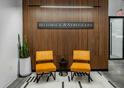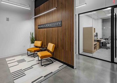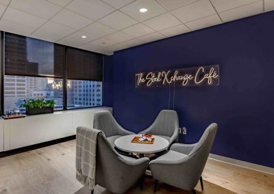 Headquartered in South Carolina, MGC Law has 22 offices in 12 states, serving clients throughout the Southeast, East Coast and New England. Patriot Construction handled the interior renovation and fit-out of their new Philadelphia office space at 2000 Market Street. Large and small conference rooms, private offices, huddle spaces, large kitchen with dining area, and reception area are all part of this modern workplace.