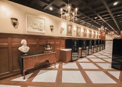 The Taboon and Bar area showcases exposed original wood bar framing and stone walls. Starting with the preconstruction phase, Patriot partnered with the owner and design team, then transitioned into the GC role.